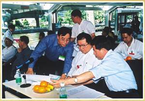 | 2002年4月,花城明珠船接待时任中央政治局常委、全国政协主席李瑞环同志 | 2002年3月,花城明珠船接待时任中央政治局常委、中央纪委检查委员会书记、全国总工会主席尉健行同志 | |